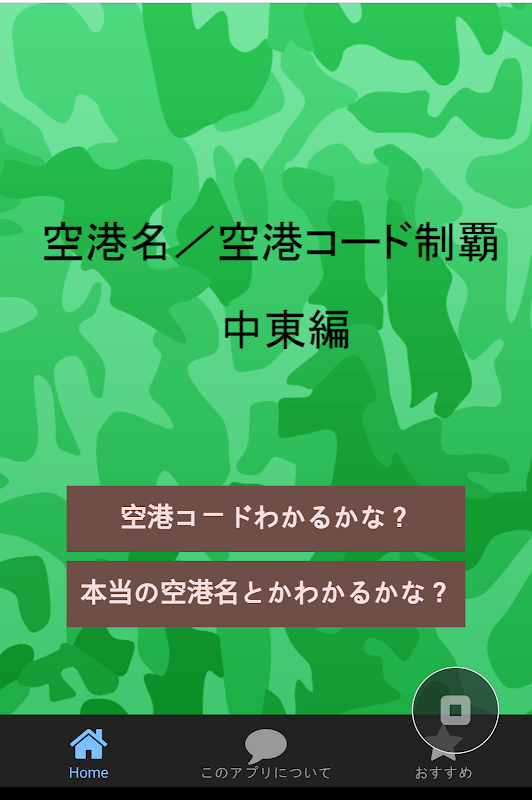 このアプリは 主要の空港をベースに それらの業界で欠かせない知識である 3文字の空港コードと空港の正式名称を遊び感覚でマスターしてしまう為に作られたクイズアプリです。