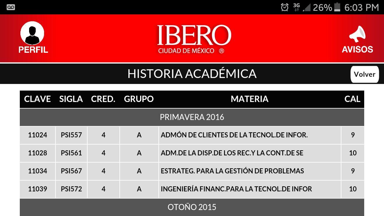 Ibero Mobile is your application from the Universidad Iberoamericana in Mexico City, to access your academic information, statements, and perform the re-registration of your materials. It was conducted by the Information Technology and Telecommunications, in this app you can: