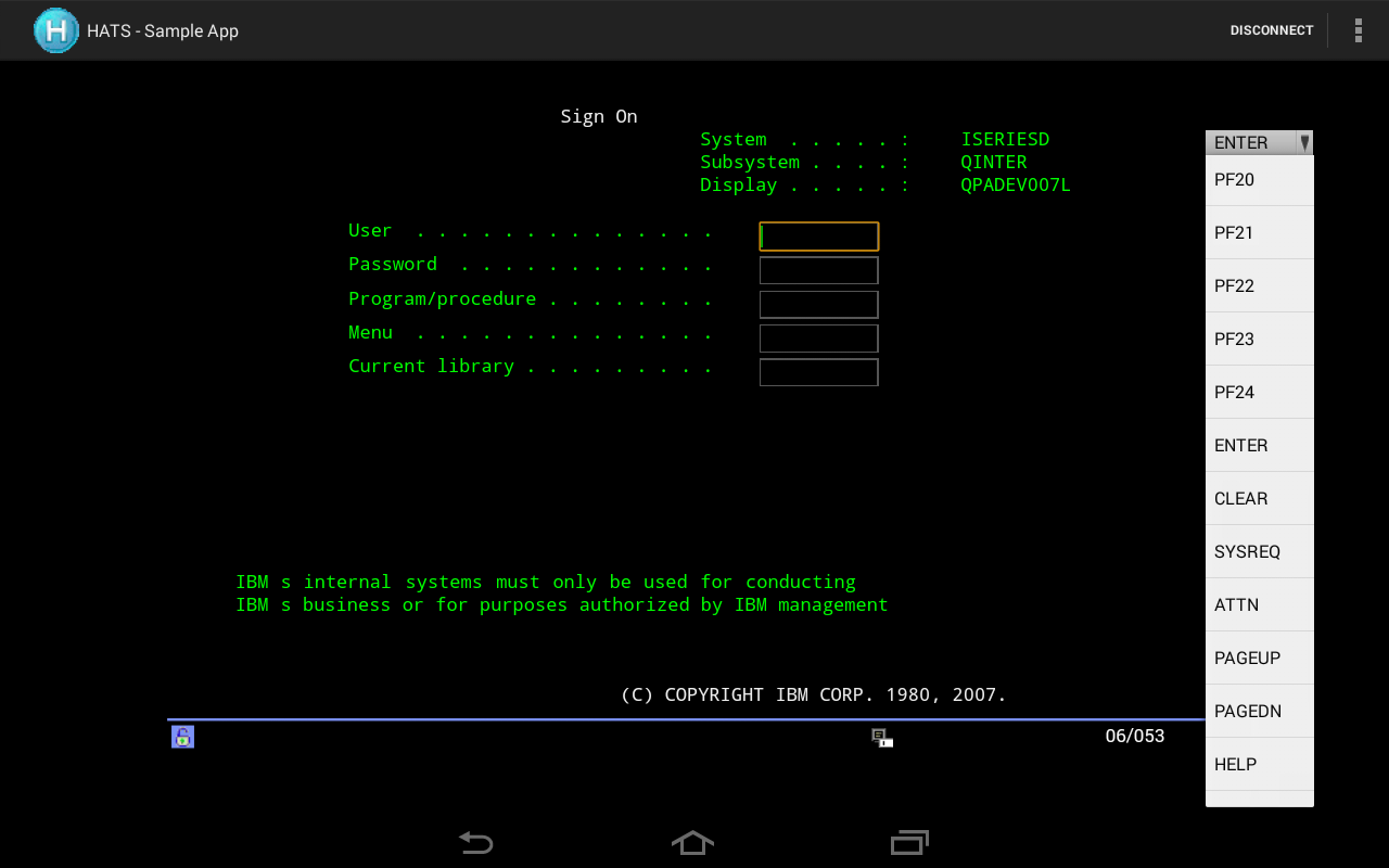 This sample app demonstrates how an android Terminal Emulator application can be developed using IBM Host Access Transformation Services (HATS)