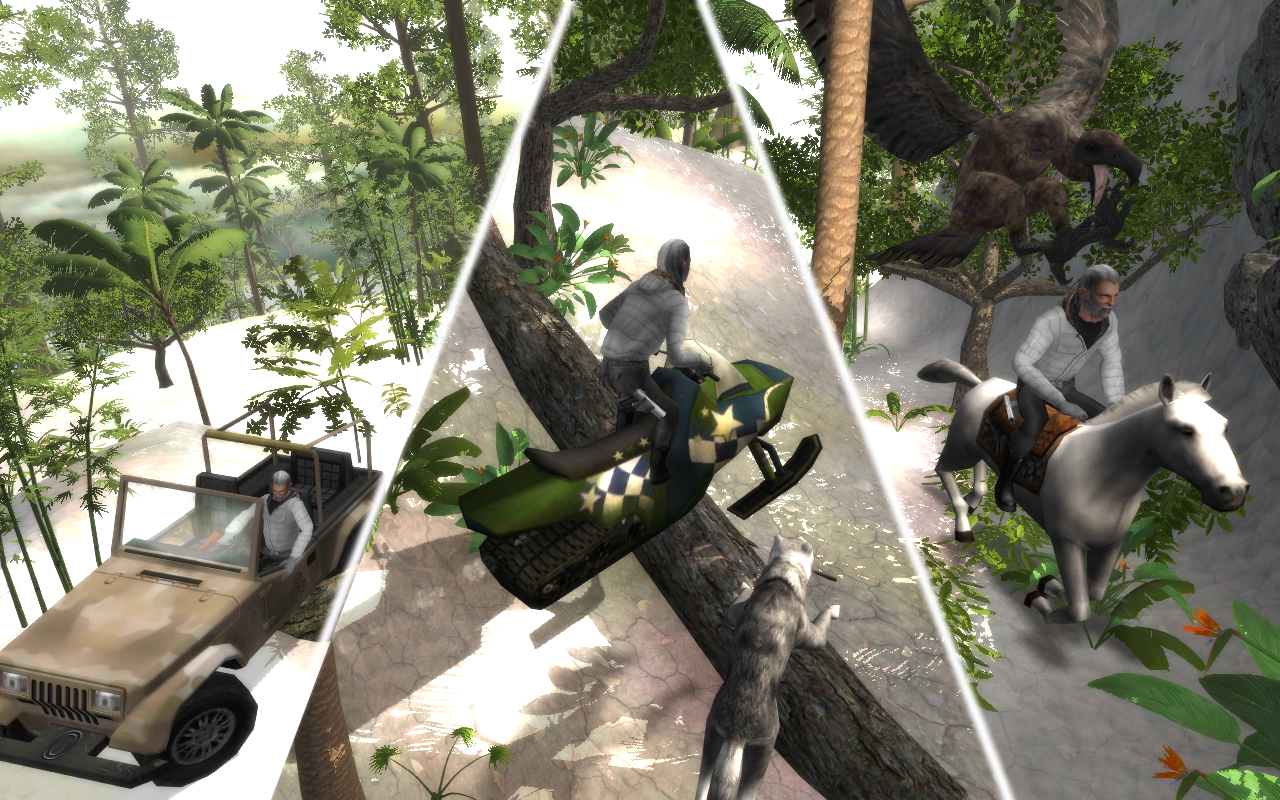 Use your 4x4 Off-Road Vehicle, Skidoo, Boat and Horse to encounter deadly animals.