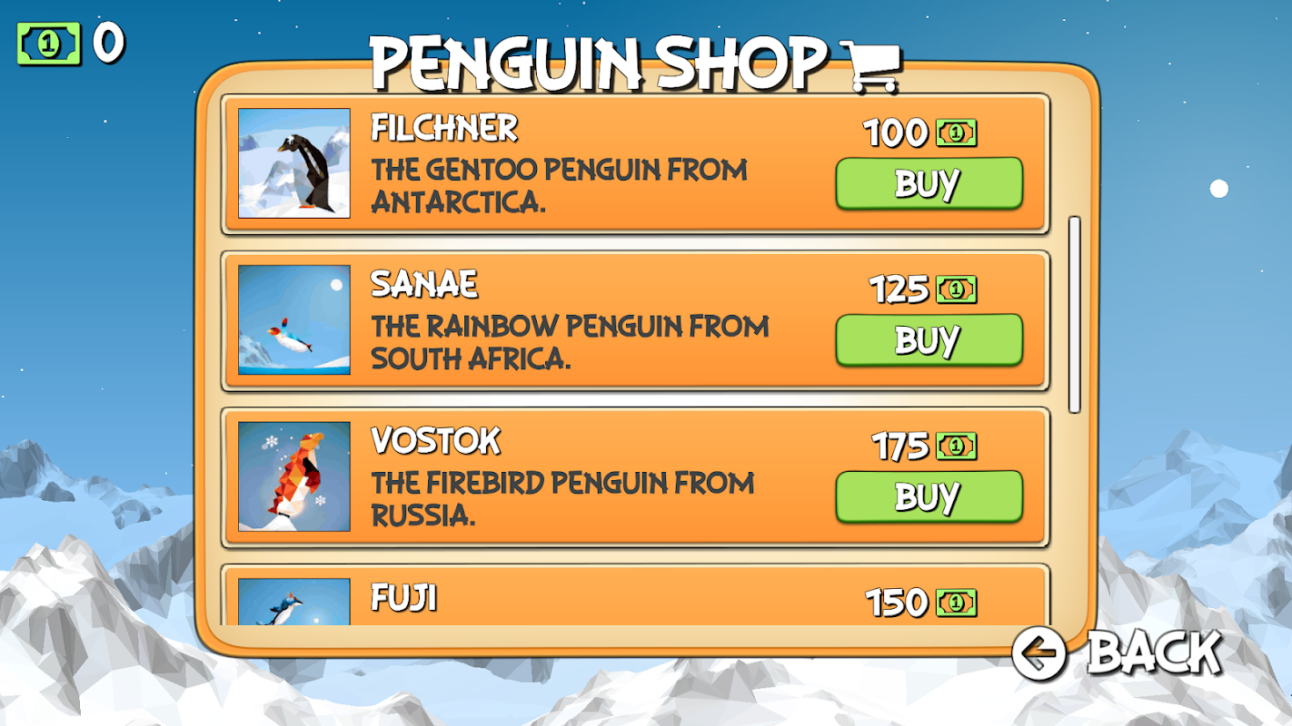 - 7 Antarctic penguins to collect: Chilly, Fuji, Ronne, Filchner, Vostok, Xue Long and Sanae.