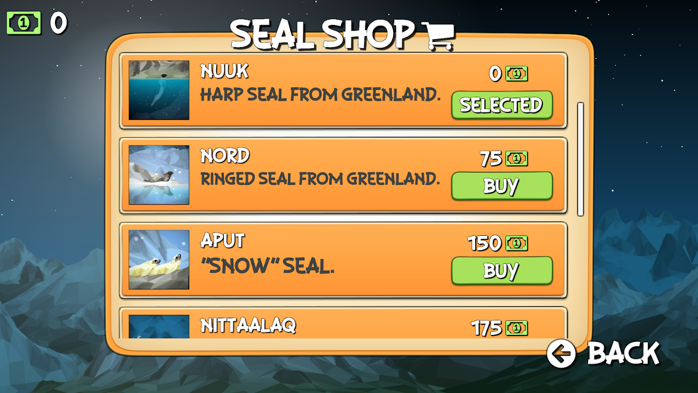 - 6 Greenland seals to collect: Nuuk, Nord, Aput, Nittaalaq, Qannerpoq and Persoq.