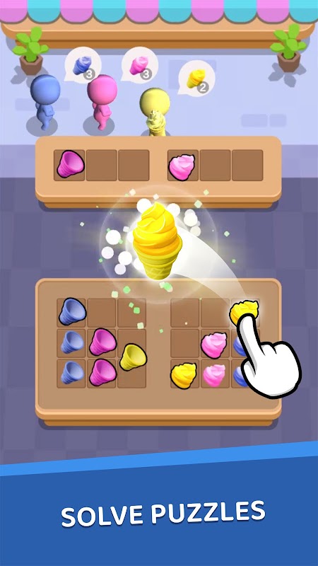 Welcome to the sweetest challenge of your life! In this captivating game jam creation, you'll dive into a whimsical world where your task is to merge two delightful pieces to form a mouthwatering ice cream cone. Engage your puzzle-solving skills as you strategically combine the colorful ingredients, from scoops of creamy vanilla to swirls of tangy raspberry, to create the perfect frozen treat. But the fun doesn't stop there! Once crafted, your delectable masterpiece is served to a lineup of eager customers, each with their own unique preferences. Will you satisfy their cravings and become the ultimate ice cream maestro? Indulge in this charming fusion of creativity and challenge, and discover the joy of crafting confectionary delights in the Ice Cream Fusion game jam experience