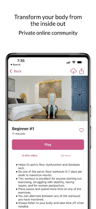 Deep core and pelvic floor therapy programs for pelvic floor dysfunction, diastasis recti, pregnancy, improved posture, and better sex and health for all women and moms. On-demand workouts (15-25 minutes) to transform your body from the inside out. Pelvic floor exercises are important before and during pregnancy, post-partum, and throughout your life. Healthy meal plans and recipes, health and wellness guides, private online community, new content every month, and more.
