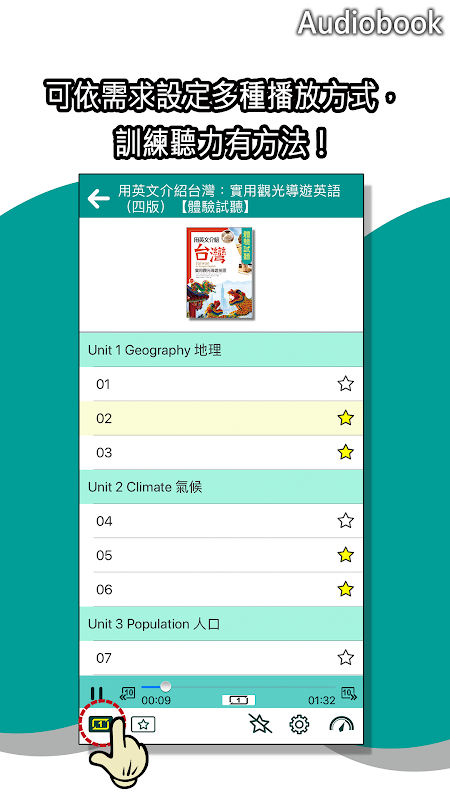 ● [Star Bookmark] can be set to mark key review audio files, which can be played repeatedly.