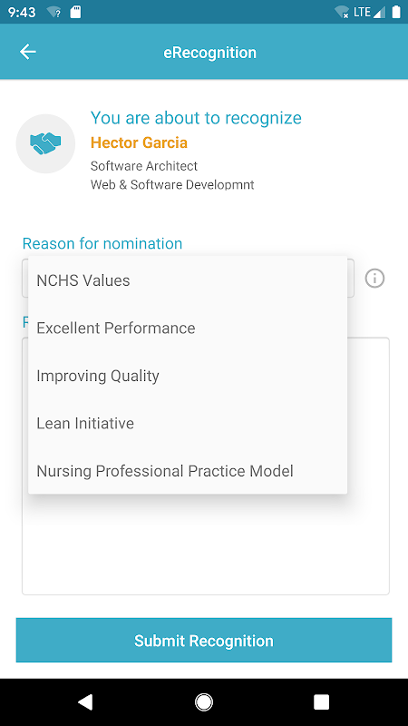 Peer recognition within the organization is known to boost morale, increase productivity and encourage collaboration. Therefore the iCreate NCHS app provides a fun and easy way to give out recognitions by following a few simple steps. After recognitions are given, the iCreate NCHS app rewards users with points which can be later redeemed for gifts and prizes. Among many other features, users can read press releases, learn about organizational events, jump to popular sites, watch live streaming events and review what is for lunch in the cafeteria today.