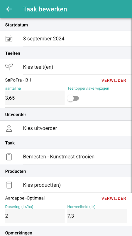 In addition, tasks for crops can be set up, scheduled and managed within iCrop by the people involved within the company. Various types of tasks are available in the app, along with an extensive list of associated application products and useful tools such as an automatic dosage calculation.