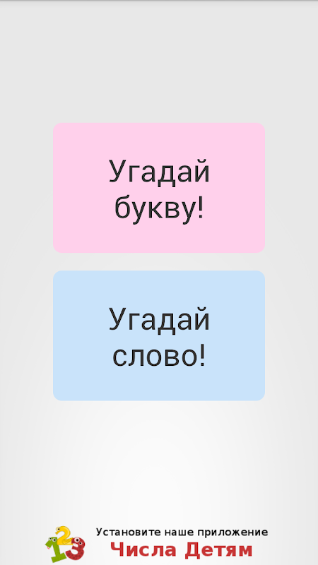 В приложении абсолютно бесплатно доступны 2 режима - обучения (каждая буква произносится с возможностью повтора) и игры (необходимо выбрать произнесенную букву или слово, начинающееся с буквы)
