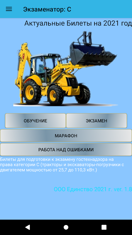 Aplikasi ini akan dengan mudah mempersiapkan Anda agar berhasil lulus ujian pengawasan teknis negara bagian untuk peralatan khusus dalam kategori C.