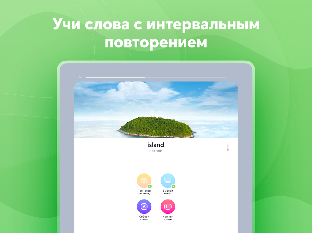 Anda akan belajar bahasa Inggris secara bertahap: lulus tes setelah setiap kategori belajar, lakukan kesalahan dan perbaiki materi baru.