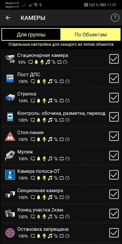 - Для каждой камеры или объекта возможна отдельная настройка звука, голосовой фразы, бипера, превышения скорости и т.п.
