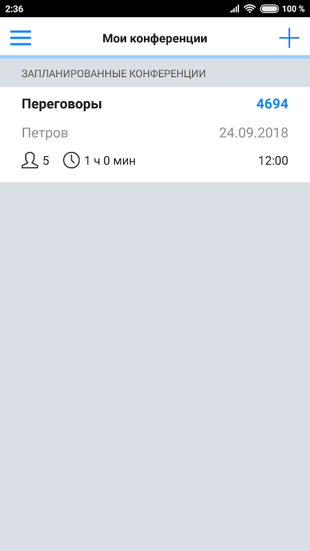 Aplikasi mobile untuk bekerja dengan layanan "Audio konferensi" dari PJSC "Rostelecom"