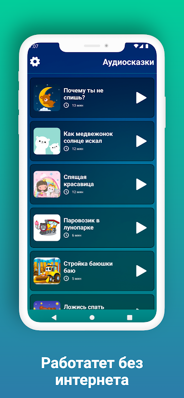 Aplikasi ini berisi banyak pilihan dongeng menarik yang akan membantu anak Anda bersenang-senang sebelum tidur dan tertidur.