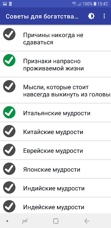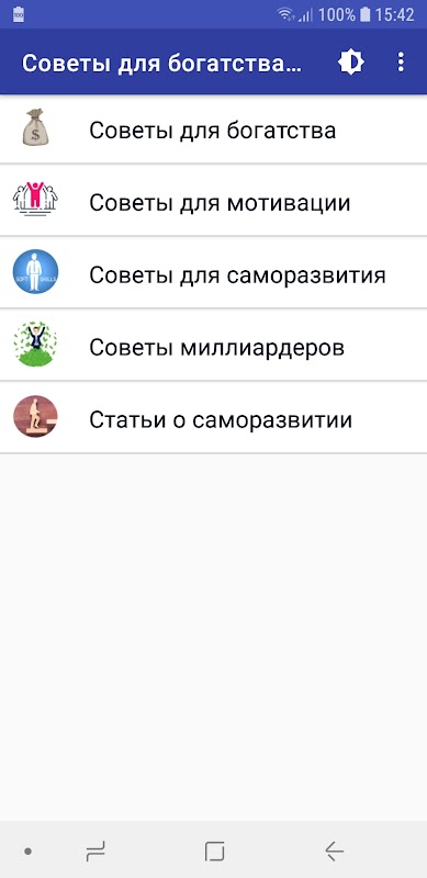 Aplikasi ini terus diperbarui, informasi baru ditambahkan ke dalamnya untuk memberi orang nasihat yang lebih rinci dan relevan. Harus diingat bahwa jika orang kaya sering melakukan kesalahan, mereka tidak akan bisa mendapatkan kekayaan besar yang mereka miliki. Oleh karena itu, sangat disarankan untuk menggunakan pernyataan bersayap mereka untuk membuat keputusan dalam kehidupan sehari-hari. Mungkin berkat ini, Anda akan bisa mencapai kesuksesan.