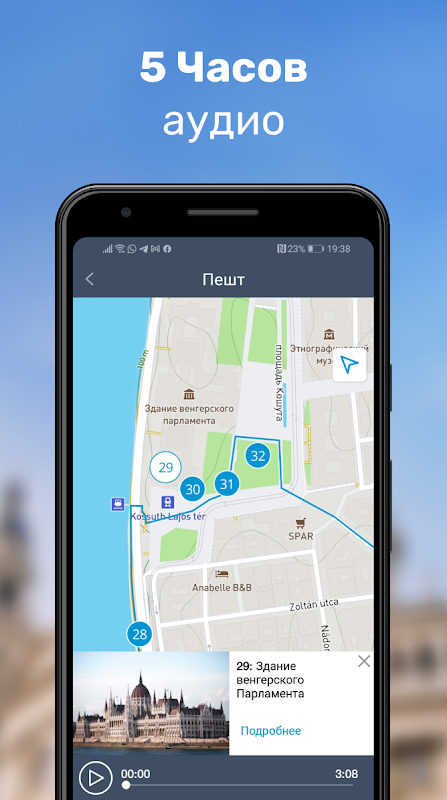 Аудиогид расскажет о главных достопримечательностях Будапешта, известных личностях, улицах, площадях dan важнейших исторических событиях, повлиявших на судьбу города.