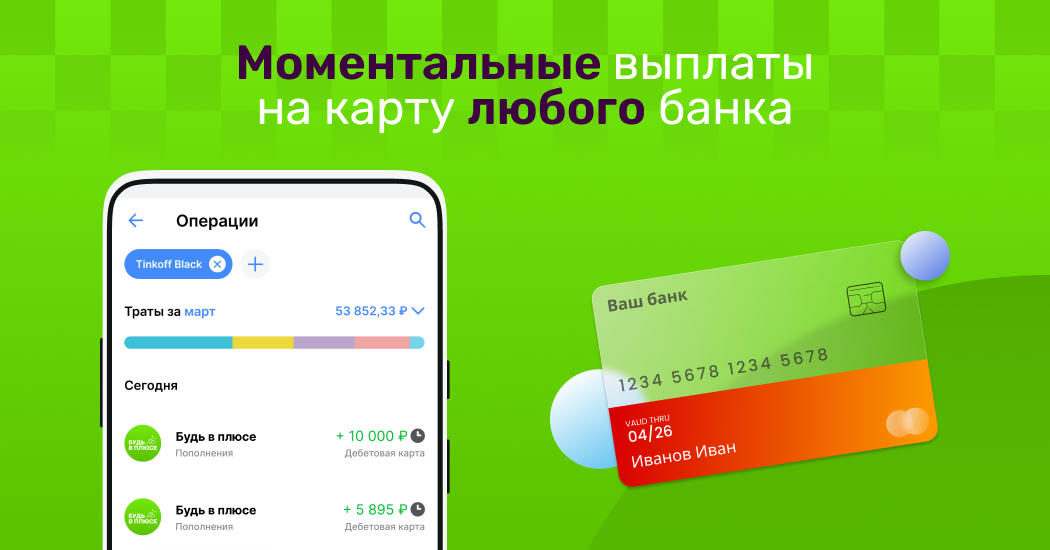 - МОМЕНТАЛЬНЫЕ ВЫПЛАТЫ на карту любого банка без выходных и праздников;