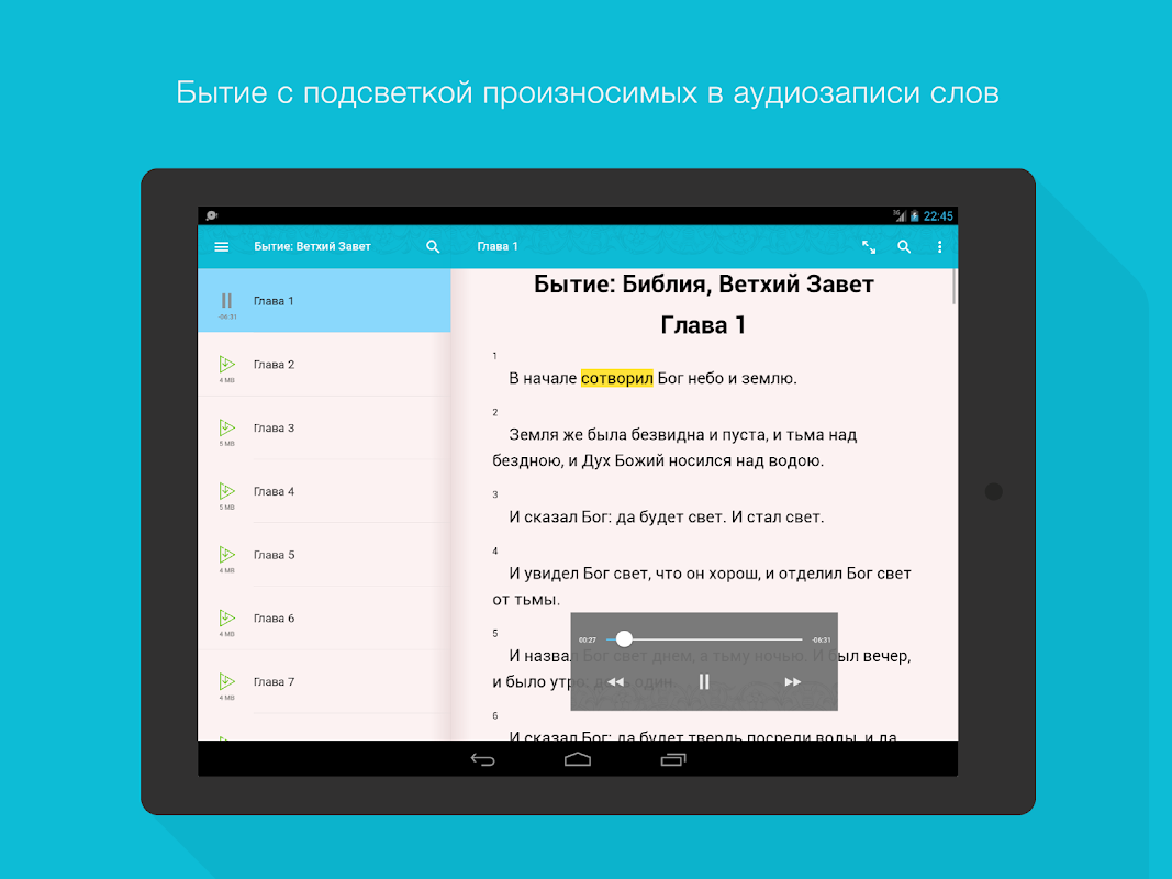 Kemampuan untuk mendengarkan memungkinkan untuk terjun ke suasana yang unik dari cerita-cerita Alkitab ketika membaca tidak mungkin (di roda, di penyakit).
