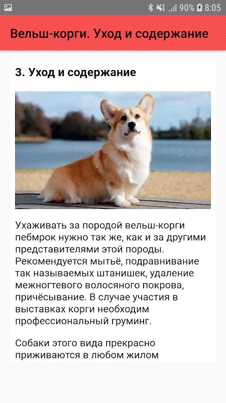 Corgi adalah anjing yang hidup dan ramah yang sangat terikat pada pemiliknya. Tanah kelahiran Corgi adalah Wales, sehingga mereka dapat disebut bahasa Inggris asli. Awalnya, mereka dibiakkan seperti anjing gembala: berkat perawakannya yang kecil, anjing dapat dengan tangkas menghindari tanduk dan kuku. Milik keluarga gembala. Trah ini menjadi populer setelah 1892, ketika Corgi disajikan di pameran.