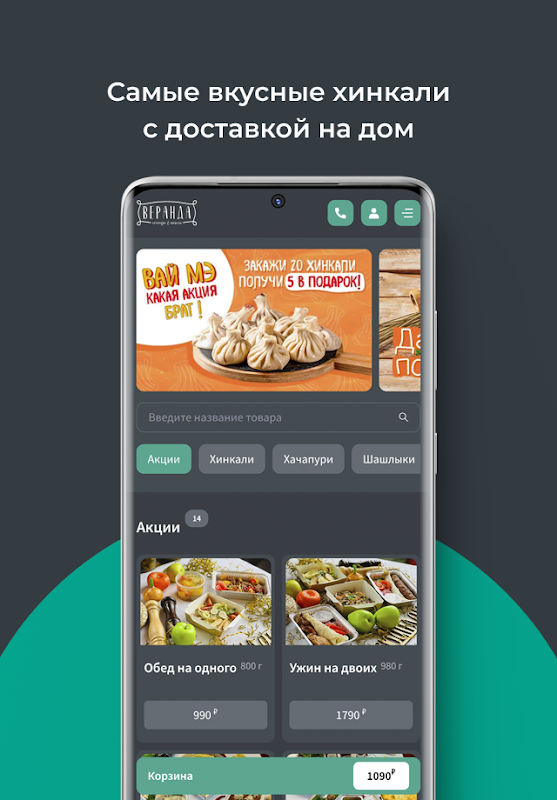 Hasilnya, Anda akan mendapatkan kualitas yang sangat baik, yang dapat Anda beli dengan harga yang sangat wajar - dan ini adalah kenyataan. Cukup unduh aplikasinya dan lakukan pemesanan. VERANDA adalah masakan dan keramahtamahan khas Georgia. Restoran pertama di Naberezhnye Chelny di tepi pantai! Kami tidak sabar untuk mentraktir Anda dengan hidangan Georgia, kebab juicy, dan khachapuri favorit semua orang. Alih-alih sushi dan pizza! Khinkali dan khachapuri! Pengiriman makanan Georgia di Naberezhnye Chelny.