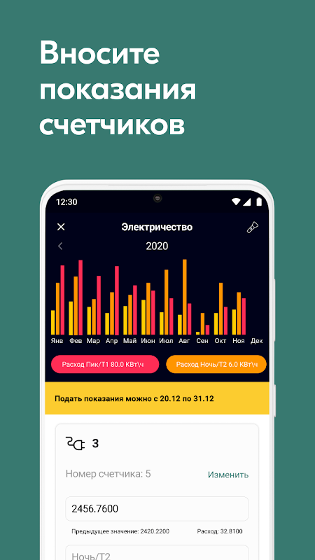 • Отправлять или просматривать показания приборов учета;