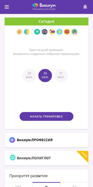 Wikium adalah simulator online untuk meningkatkan produktivitas otak untuk orang dewasa dan anak-anak. Pelatihan otak harian akan membantu mengembangkan memori, perhatian, pemikiran, serta logika, kreativitas, kemampuan untuk berkonsentrasi dan menganalisis informasi secara komprehensif. Latihan untuk otak akan membantu mempertahankan fungsi kognitif dasar dalam nada.
