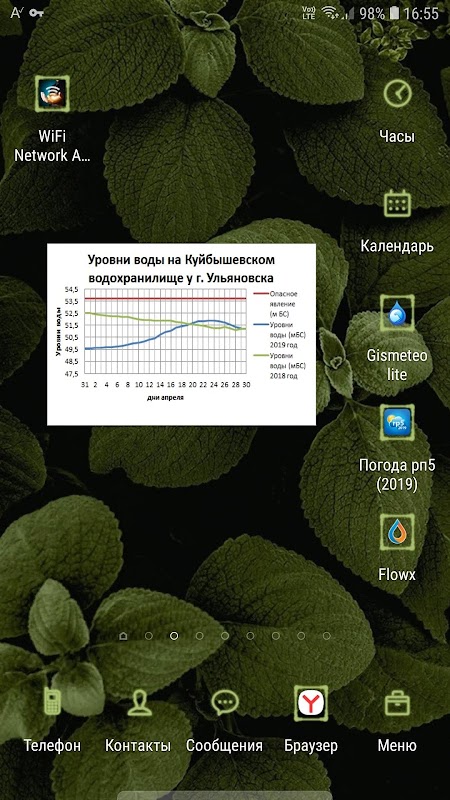 Sebuah aplikasi yang menampilkan widget dengan grafik ketinggian air Sungai Volga di waduk yang sesuai dari lima kota: Samara, Saratov, Syzran, Togliatti, Ulyanovsk.