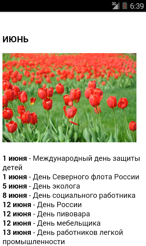 Легкое бесплатное приложение - все праздники России. Список праздников по месяцам.