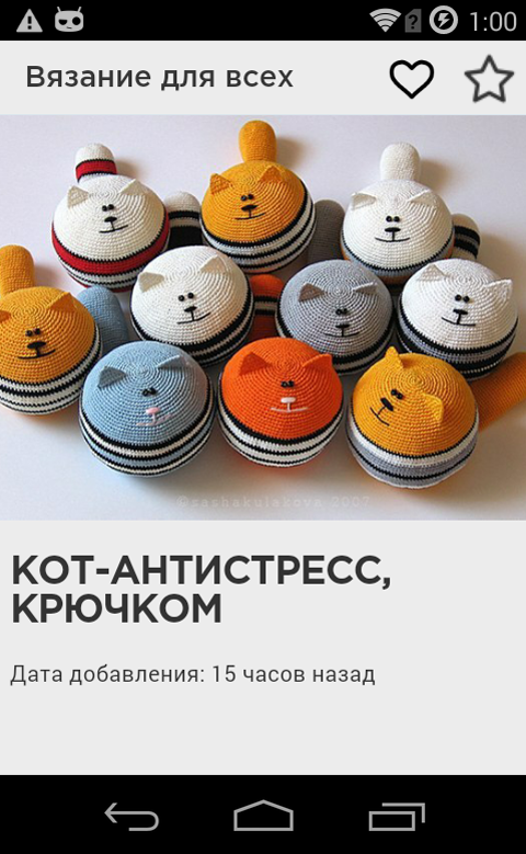 Приложение «Вязание для всех» поможет Вам оставаться на пике вязаной моды, быть в курсе последних новых модных моделей в мире вязания спицами и крючком, следить на лучшими из них. В приложение представлены различные модели вязания: кардиганы, пальто, жакеты, кофты, пуловеры, джемперы, свитера, платья, туники, юбки, шапки, шарфы, шали и так далее.