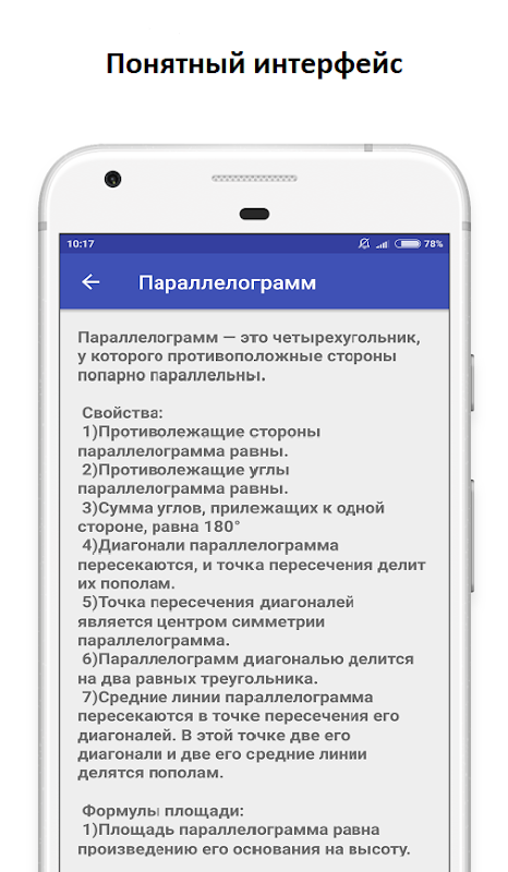 Aplikasi ini berisi persyaratan dasar dan untuk formula 7, 8, 9, 10, dan 11 kelas. Dengan aplikasi ini, Anda dapat meningkatkan pengetahuan Anda tentang geometri atau mengulang topik yang sudah selesai. Materi yang disampaikan dalam aplikasi ini sering ditemukan sebagai ujian sekolah biasa, dan OGE dan ujian.