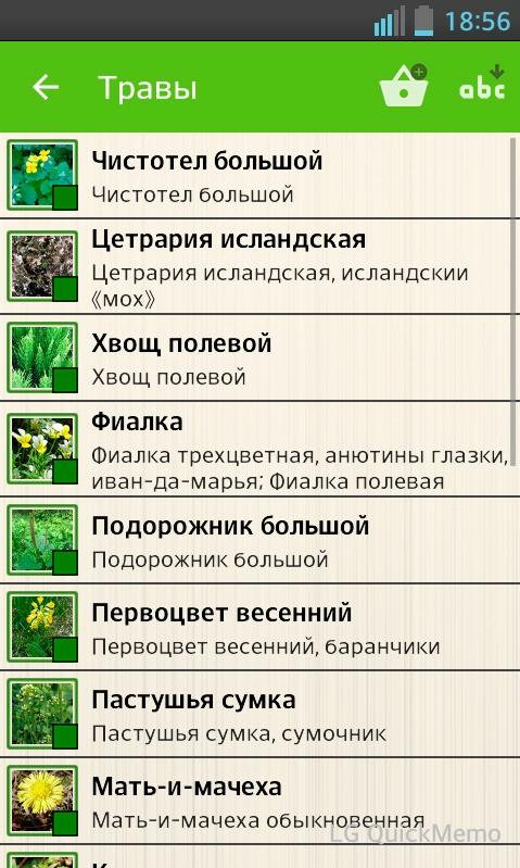 - Herbal: keluarga, nama lengkap dalam bahasa Rusia dan Latin bahasa, deskripsi botani, distribusi geografis, pengumpulan dan pengeringan, bahan baku obat, komposisi kimia, operasi dan penggunaan.
