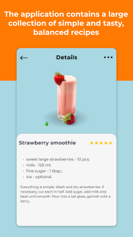 Therefore, our team has created a huge collection of healthy recipes for proper nutrition. Eat delicious food and don't limit yourself to a good, balanced diet. In our application, you will find extensive functionality that makes it much easier to navigate through your favorite recipes. And our smart assistant will delight you with new useful recommendations every day.