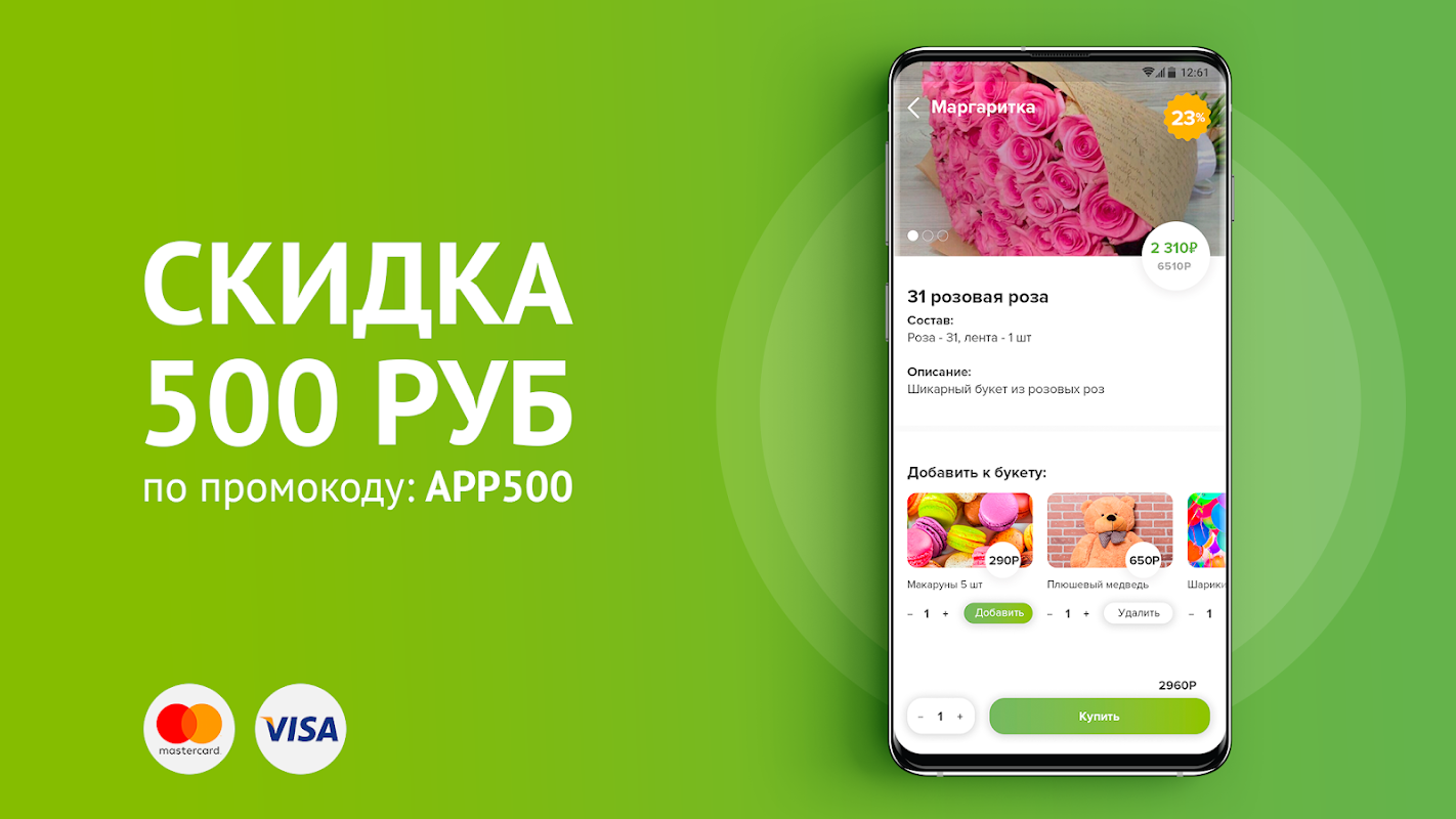 В приложении так много вариантов — более 2000 предложений по Москве, — что вы точно найдёте букет за нужную сумму. А ещё мы каждый день выкладываем супер предложения со скидками до 70%.