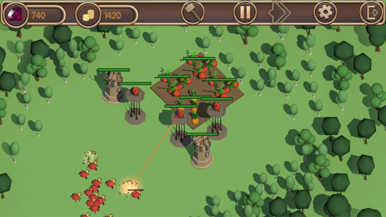Lindungi kebun dari serangan hama! Pertahanan menara melawan bug.