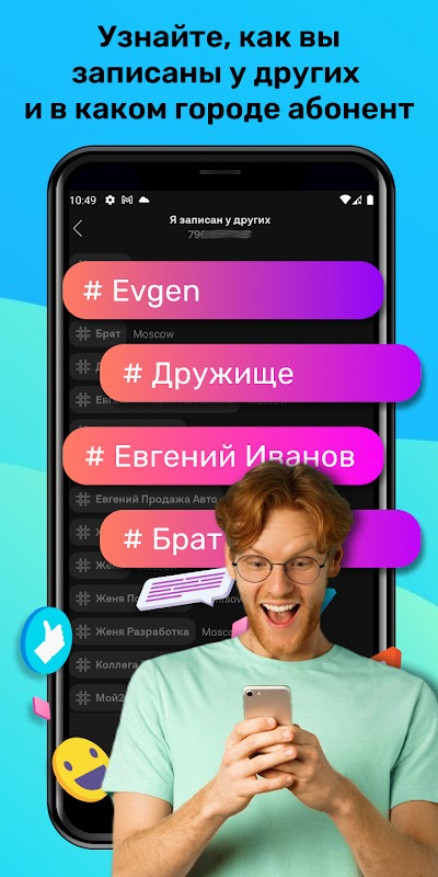 Aplikasi untuk mengetahui bagaimana Anda atau nomor yang Anda minati dicatat oleh orang lain di buku telepon. Tidak seperti GetContact, semua fungsionalitasnya gratis. Selain itu, Anda dapat membaca ulasan tentang seseorang atau menulis ulasan tentang seseorang.
