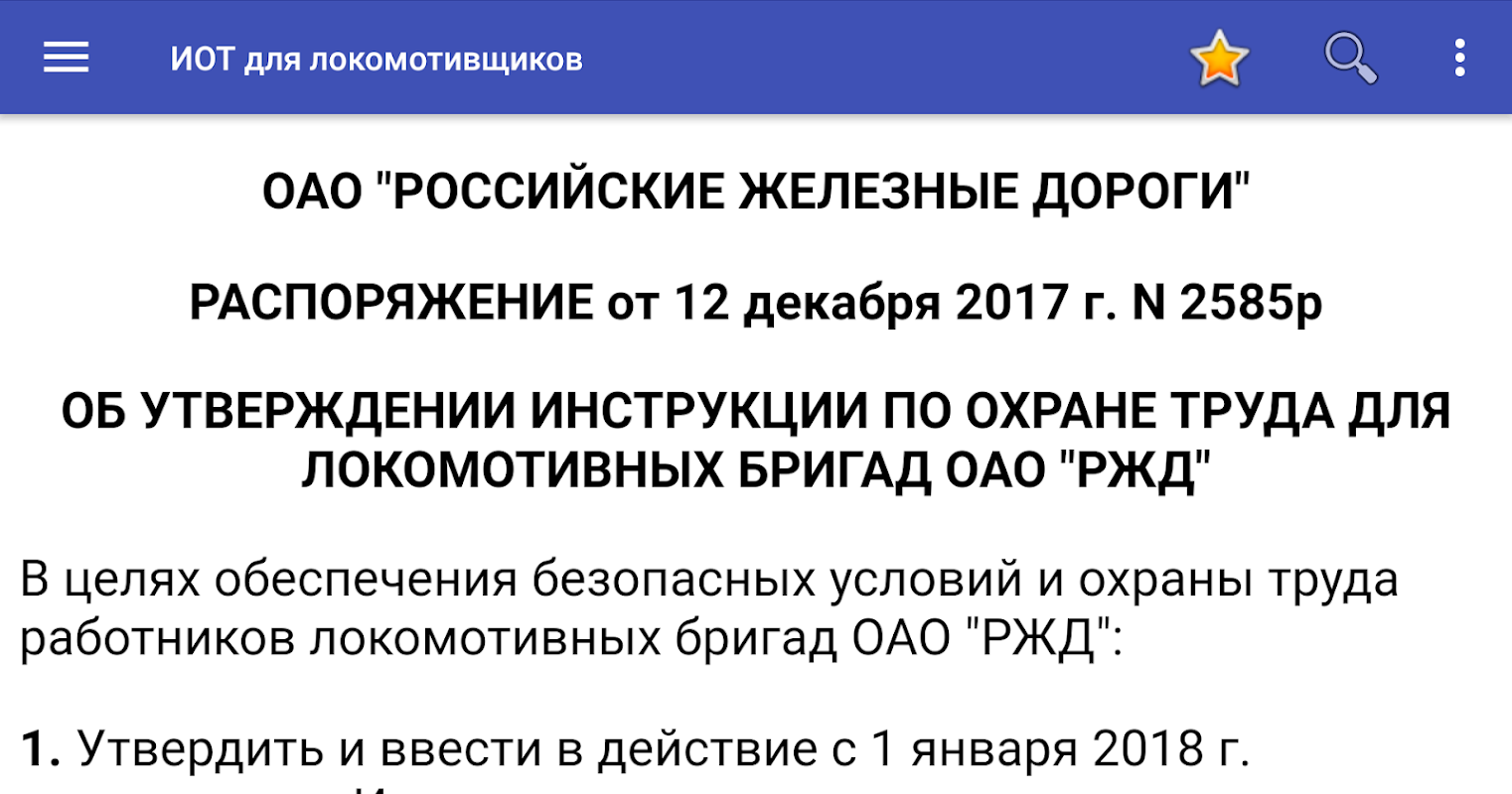 Alih-alih Instruksi tentang perlindungan tenaga kerja untuk awak lokomotif Perkeretaapian Rusia, disetujui atas perintah Perkeretaapian Rusia 12 Desember 2017 N 2585r