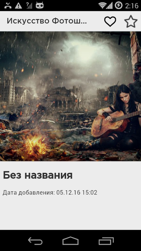 В приложении "Искусство Фотошопа" собрано огромное количество самых интересных материалов обработок фотографий, авторами, которых являются только опытные мастера. Приложение представляет собой фотоальбом, где можно найти каждому желающему интересные фотообработки. Все представленные работы имеют абсолютно разную тематику, с большим разрешением и в хорошем качестве.