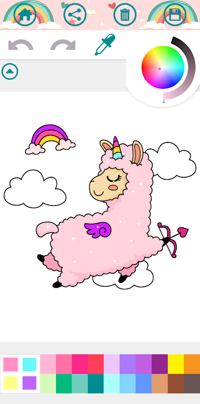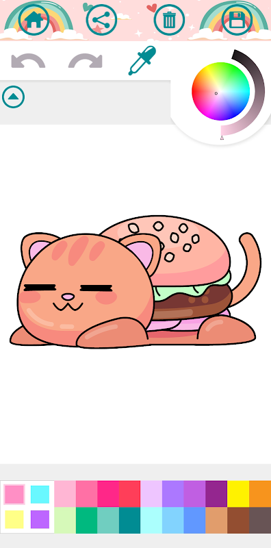 ✔ Pilih warna di palet dan klik area gambar kawaii yang ingin Anda lukis. Kemudian pilih warna berikutnya di palet dan lanjutkan mewarnai kawaii; ✔ Gunakan dua jari untuk memperbesar/memperkecil gambar kawaii;