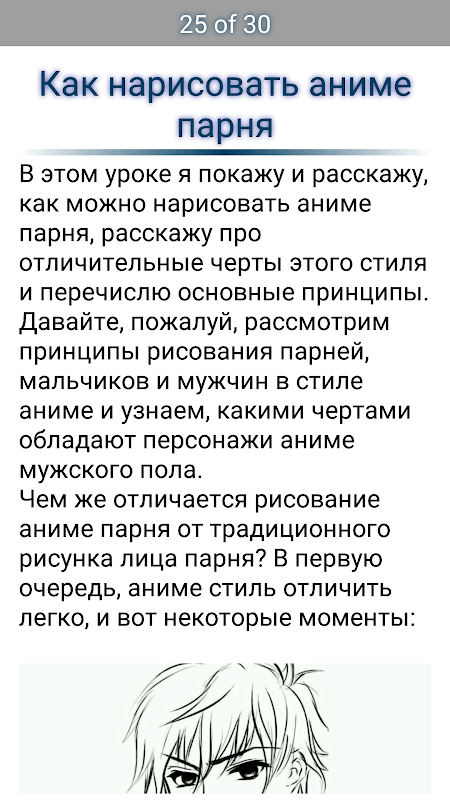 В этом приложении вы найдете подробные уроки рисования, с помощью простых пошаговых инструкций последовательно показывают все этапы создания изображения. Уроки рисование аниме позволят вам быстро и весело постичь основы рисования в силе аниме.