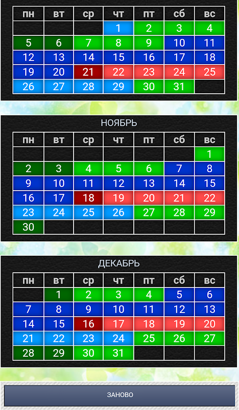 Узнайте ваши дни овуляции, менструации, благоприятные для зачатия дни и безопасные дни для занятия сексом. Женский календарь зачатия и овуляции простое в использовании приложение, служит для расчета менструального цикла и наиболее подходящего периода зачатия ребенка. Укажите дату последней менструации и ее продолжительность и общую длительность цикла. В календаре овуляции будут отмечены фертильные дни, в них вероятность зачатия достаточно высока, а также дни овуляции, когда вероятность зачатия максимальна. Задача женского календаря помогать женщине определить дни повышенной фертильности (овуляции), в эти дни зачатие ребенка наиболее вероятно. А благодаря расчету так называемых безопасных дней для секса, календарь овуляции позволит избежать нежелательной беременности, при этом не используя медикаментозные и механические противозачаточных средства.