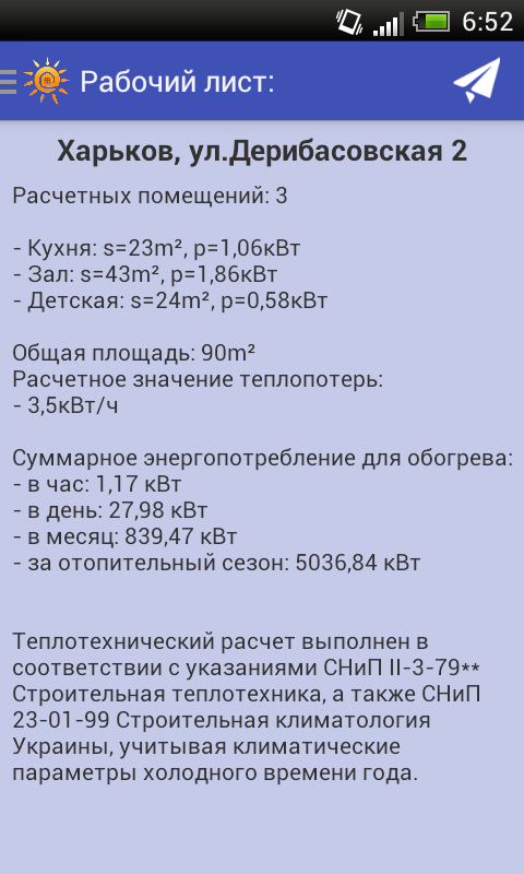 - отправлять расчет мощности в электронном виде заказчику (или себе);