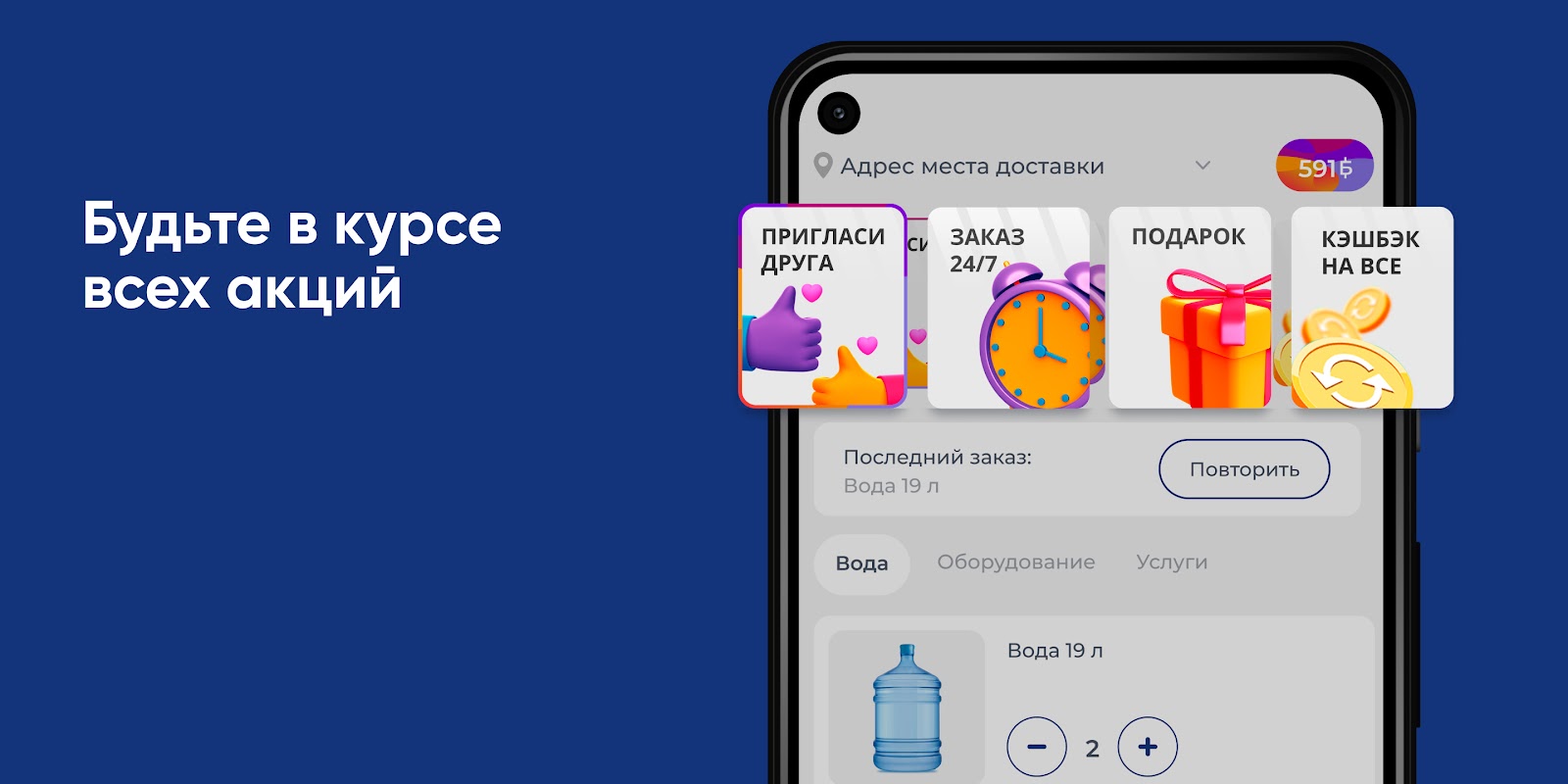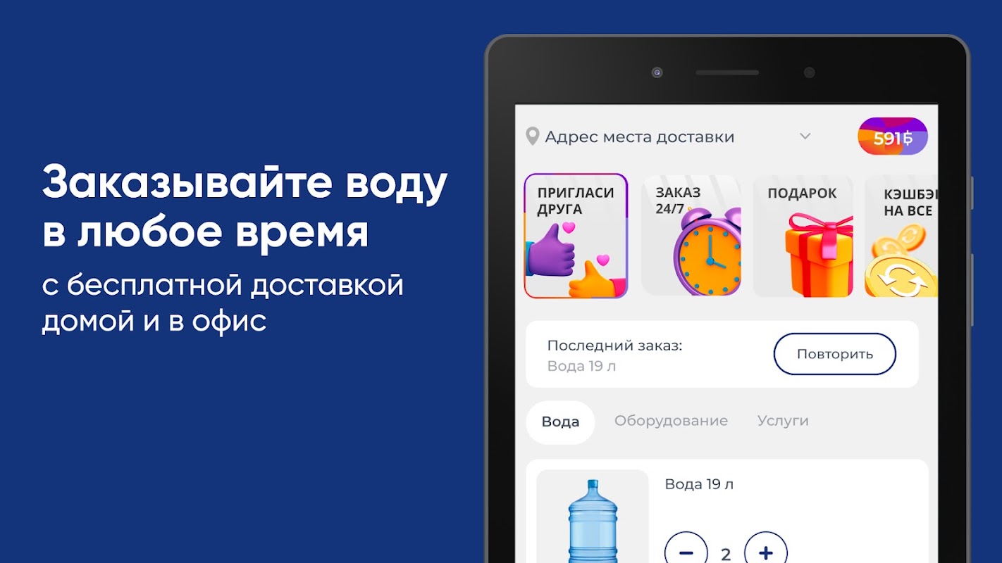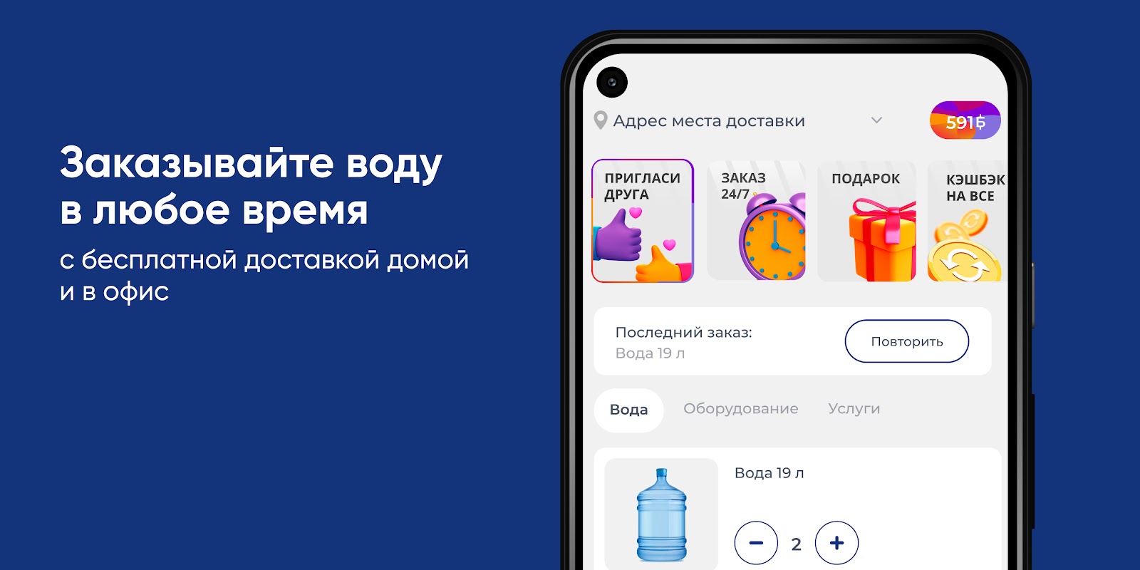 Unduh aplikasi KNEZHITSA di smartphone Anda dan pesan air 24/7. Anda akan dapat mengulangi pesanan dengan mengklik tombol, melihat seluruh riwayat pembelian dan mengikuti semua promosi perusahaan.