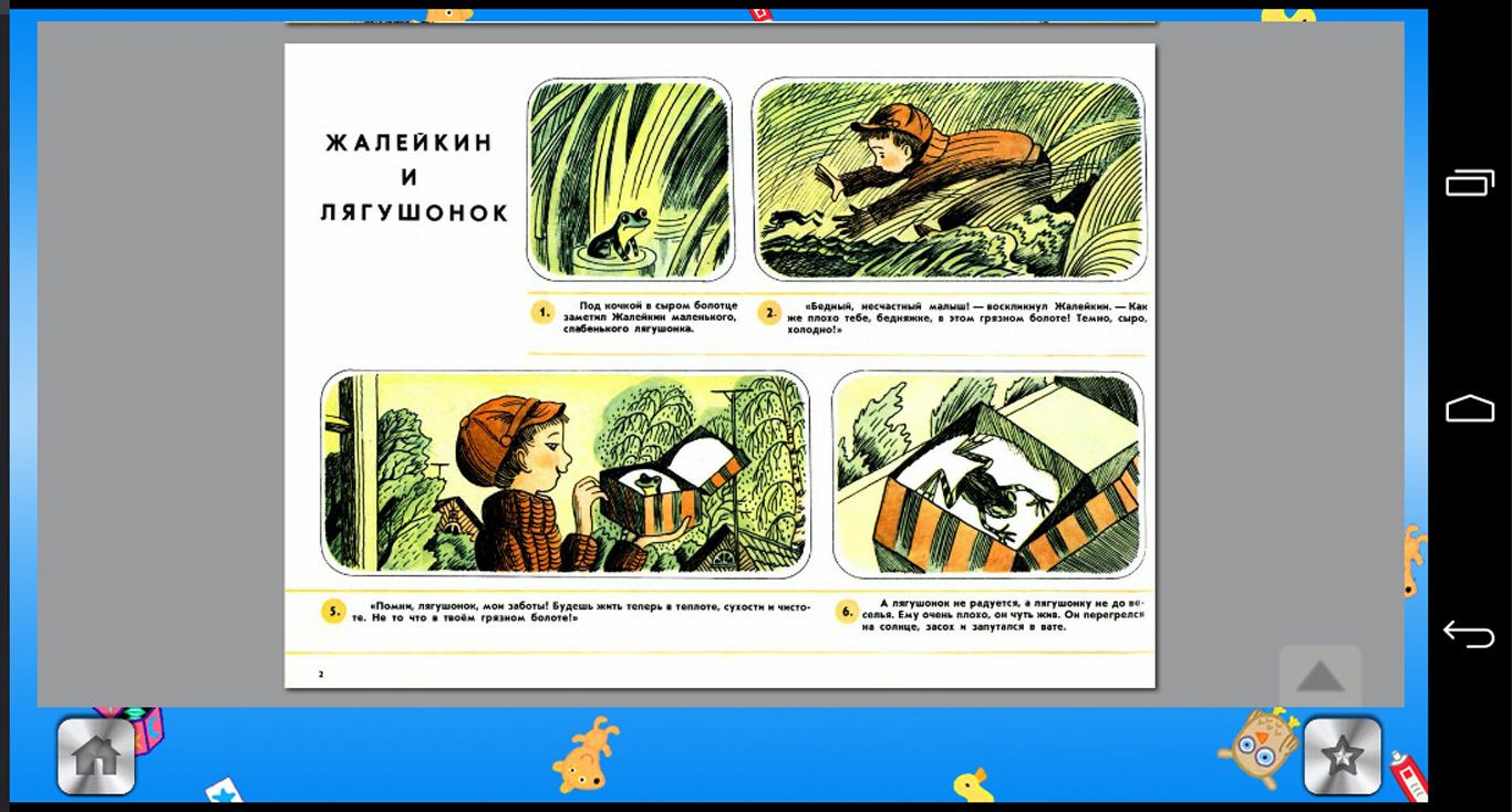 Dalam aplikasi ini, Anda dapat melihat pemindaian buku dan majalah anak-anak.