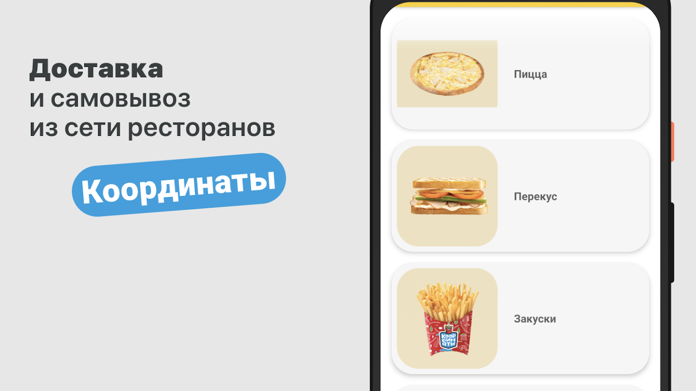 Cara memesan di aplikasi "Koordinat": pilih item yang Anda suka dari menu, tambahkan ke keranjang dan buka layar checkout (dengan mengklik ikon keranjang).