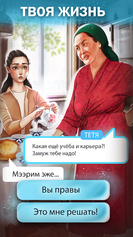 Anda akan menjawab ini dan banyak pertanyaan lain dalam game untuk anak perempuan Menelan: "Musim Semi di Bishkek". Dalam permainan Anda akan menemukan Catatan - itu ditulis oleh pengacara, psikolog, dan jurnalis terbaik di Kirgistan. Mereka berisi informasi penting yang akan membantu Anda membuat keputusan dan pilihan baik dalam permainan dan dalam kehidupan nyata, dan melindungi diri sendiri dan orang yang Anda cintai dari ala kachuu. Plotnya didasarkan pada kisah nyata gadis-gadis dan wanita dari berbagai kota dan desa di Kirgistan.
