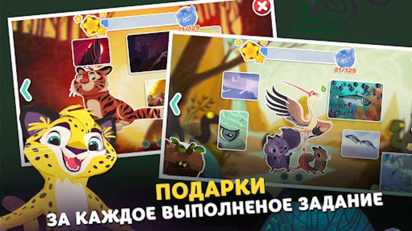 Game "Leo and Tig" berdasarkan serial animasi dengan nama yang sama akan membawa Anda bertualang dengan karakter menawan dari serial animasi tersebut: Leo macan tutul Timur Jauh, anak harimau Tig yang gagah, musang kecil Mila, si tangkas lynx Yara, babi hutan kecil Kuba yang ceria, tupai kecil Martik, anak elang Kino, dan kelinci kecil pemberani Willy.