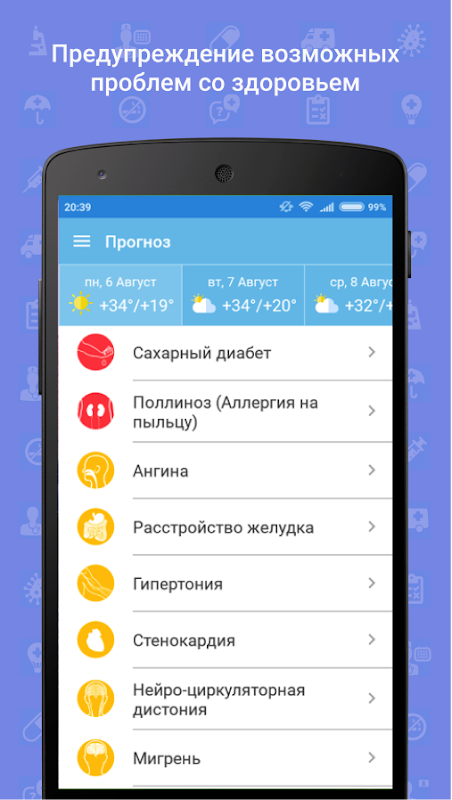 Meteosensitivitas adalah masalah dengan tingkat yang bervariasi, sekitar 85% dari populasi dunia bertabrakan. Fluktuasi suhu dan indeks udara lainnya, badai magnetik, pembungaan rumput dan pohon - semua ini mempengaruhi kesehatan seseorang dan dapat menimbulkan konsekuensi yang berbeda: dari rasa kantuk yang berlebihan dan nyeri sendi hingga eksaserbasi serius penyakit kronis. Itu sebabnya orang dengan tingkat meteosensitivitas yang berbeda sangat penting untuk terus menerima ramalan cuaca yang akurat dan dapat mengendalikan kondisi mereka bahkan dalam kondisi alam yang paling sulit. Aplikasi seluler "MeteoDoctor" dari MedAboutMe adalah penemuan nyata bagi mereka yang akrab dengan cuaca (angin, suhu, hujan, kelembaban, tekanan atmosfer, dll.).