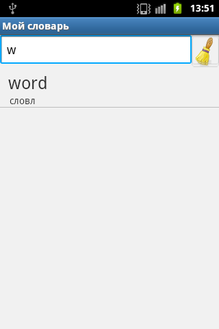 Для того что бы добавить слово - проведите пальцем в влево, что бы перейти к списку слов - проведите пальцем вправо.