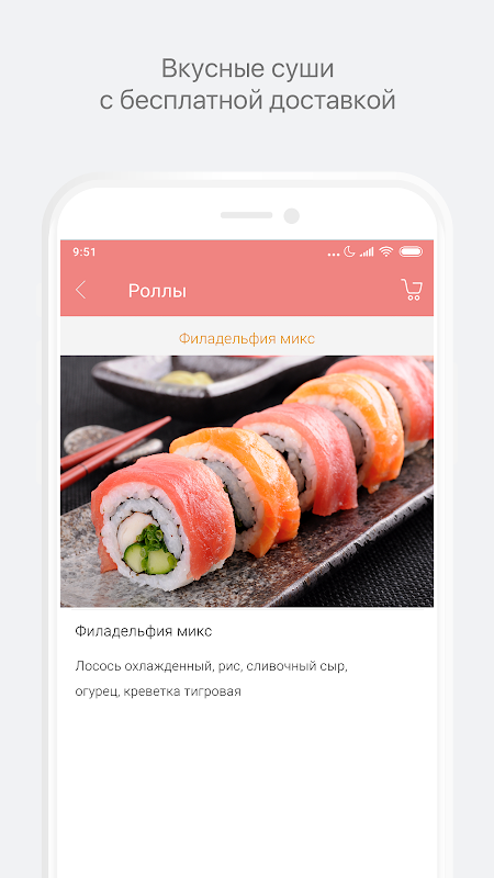 Удобное приложение с полным меню, актуальными ценами, акциями, скидками и промокодами, где можно заказать вкусные роллы и суши недорого всего в несколько касаний.
