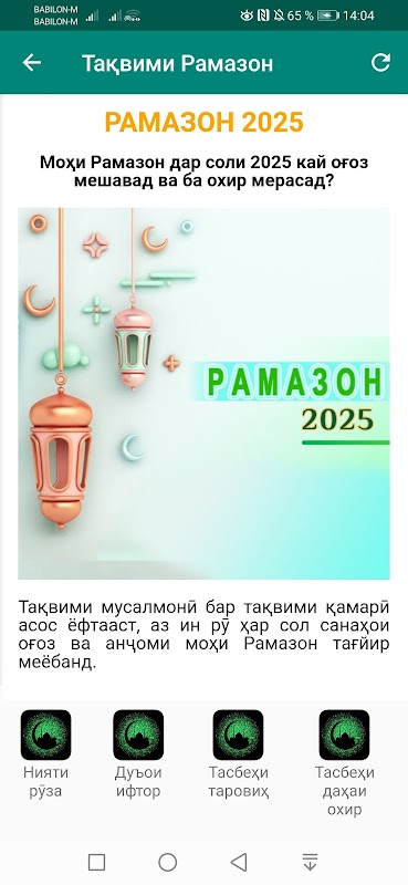 Takvim bo omadani Ramazon nav karda meshavad.