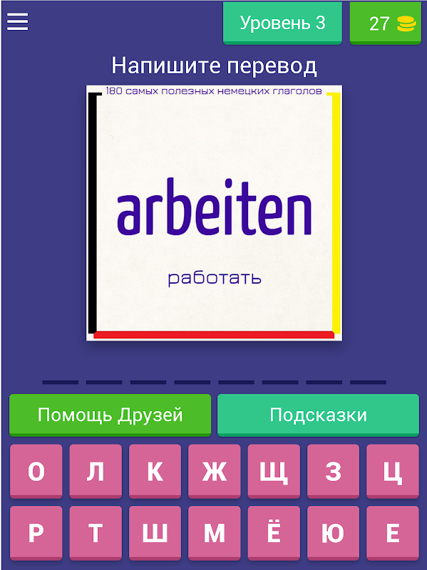 Приложение "Немецкие Глаголы ТОП-180" - увлекательное обучающее приложение, в игровой форме изучите все основные глаголы немецкого языка.